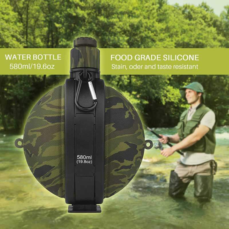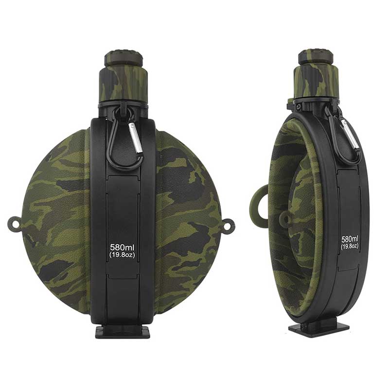 Our Collapsible Military Compass Canteen is a premium 580ml/19.8oz silicone water bottle for outdoor enthusiasts. With a sleek camouflage design, it’s crafted from high-quality food-grade silicone. We’re a manufacturer offering customization, rigorous quality control, and competitive pricing.