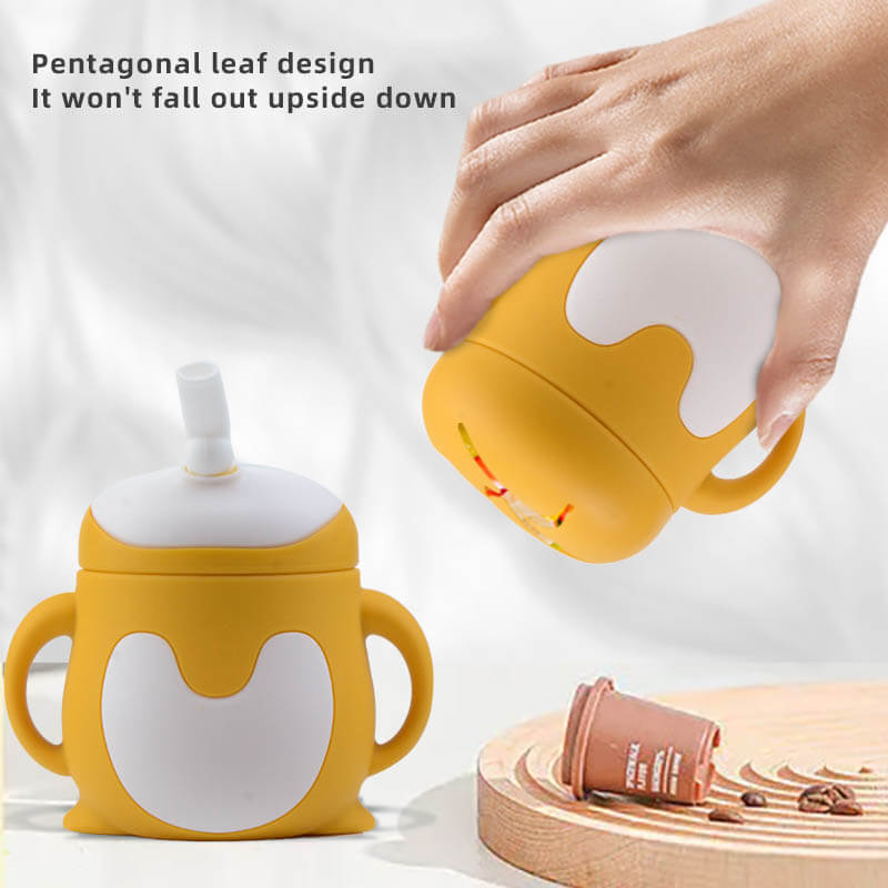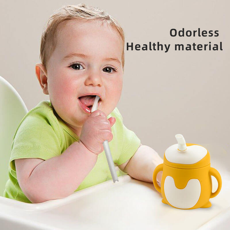 3-in-1 silicone baby training cup: the baby cup comes with a straw lid, a straw lid, and a snack lid. The different lids are suitable for babies at different stages of drinking. Baby silicone cups can be used as snack cups, straw cups, and straw cups.
